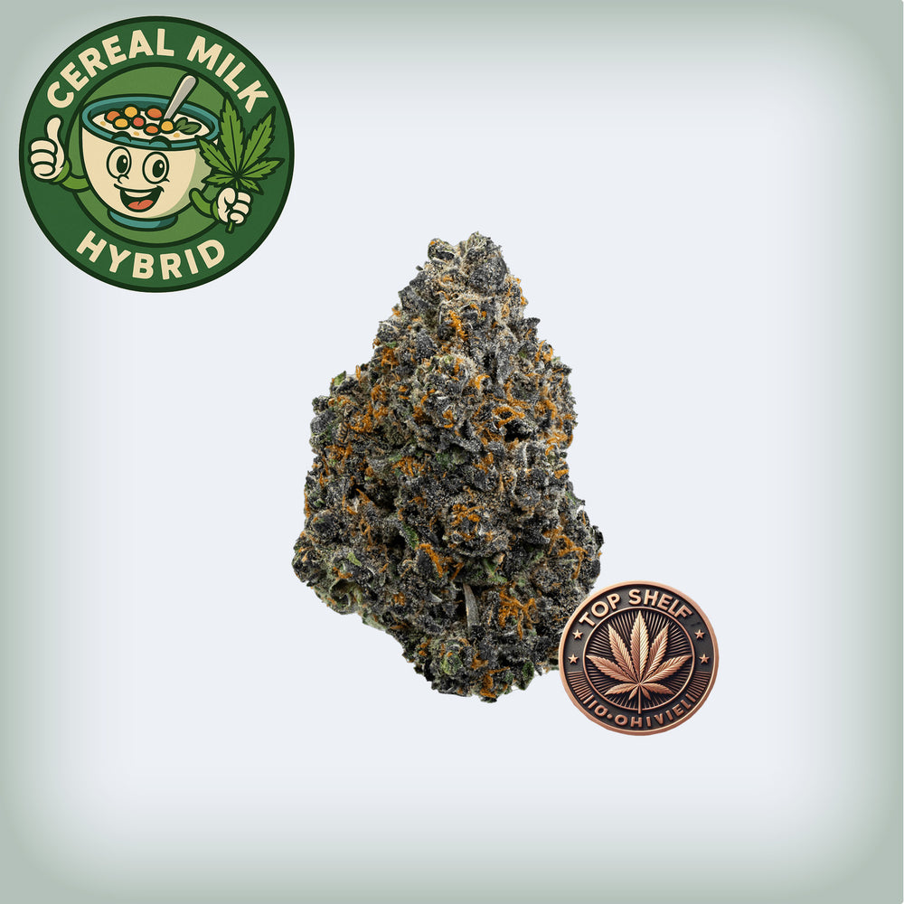 As the name suggests, Cereal Milk tastes just like the leftover milk in your favorite sugary cereal—with creamy vanilla notes, sweet berries, and a splash of citrusy tang. The aroma is loud and inviting, with fruity dessert tones that linger long after your sesh. Visually, the buds are dense, frosty, and colorful—coated in trichomes with hints of purple and vibrant orange pistils.