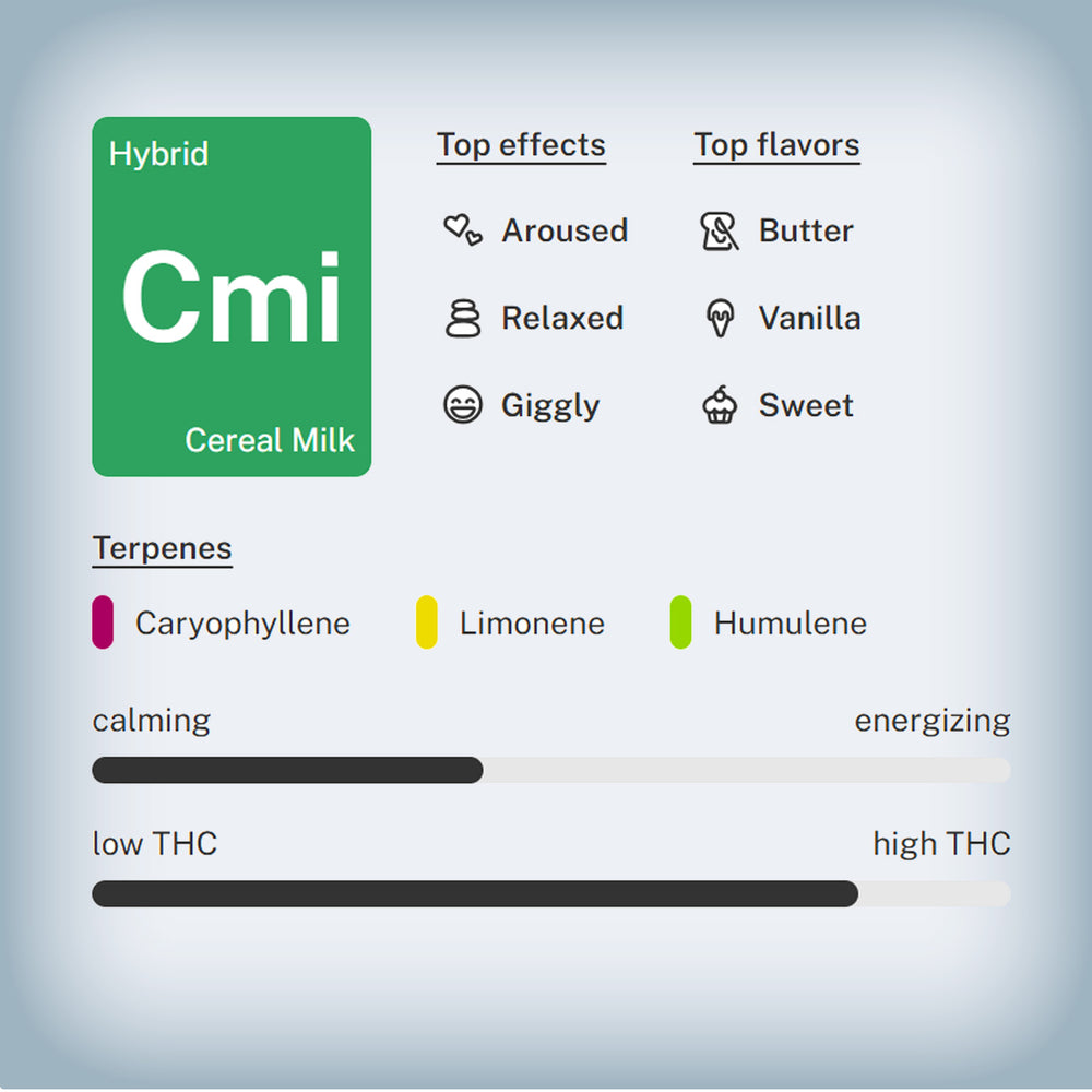 Satisfy your craving for flavor and power with Cereal Milk THCa Flower, a premium hybrid strain that blends rich dessert-like terpenes with potent THCa content for a smoke that’s as delicious as it is effective. Grown indoors and hand-trimmed by Island Roots, this exotic strain is a cross of Y Life (Cookies x Cherry Pie) and Snowman, delivering a balanced high with euphoric uplift and a smooth, relaxing finish.
