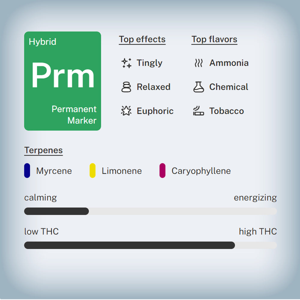 Permanent Marker is a hybrid cannabis strain known for its balanced effects and distinctive aroma. It's a sought-after strain for those who enjoy a blend of euphoria and relaxation.